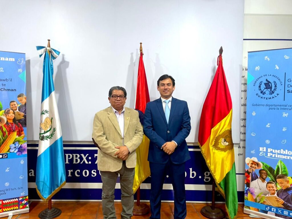 San Marcos, Guatemala; 19 de noviembre de 2025.- Con el objetivo de fortalecer la relación bilateral entre México y Guatemala, el subsecretario de Seguimiento y Desarrollo Socioeconómico de la Frontera Sur, Carlos Andrés Siles Torres, sostuvo una reunión con Rolando López Crisóstomo, gobernador departamental de San Marcos, Guatemala.